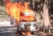 चलती पिकअप में लगी आग