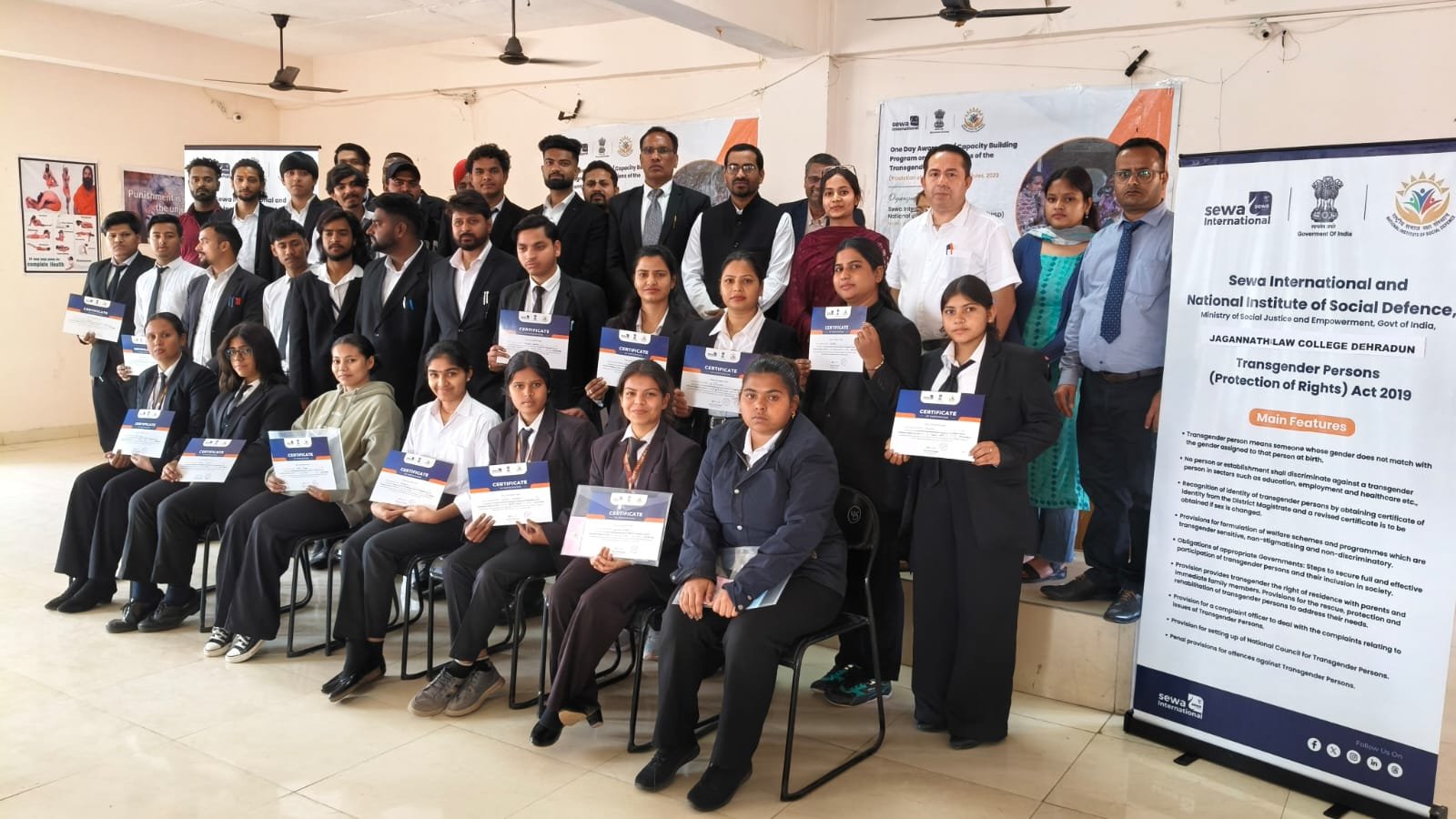 जे. वी.सी. इंस्टीट्यूशन के जगन्नाथ विश्व लॉ कॉलेज लाल तप्पड़, देहरादून के परिसर में छात्रों के लिए ट्रांसजेंडर समुदाय से जुड़ी भ्रांतियों और सामाजिक समस्याओं जागरूकता बढ़ाने के उद्देश्य से ट्रांसजेंडर व्यक्तियों (अधिकारों का संरक्षण) अधिनियम, 2019 और नियम, 2020 के प्रावधानों पर एक दिवसीय कार्यशाला का आयोजन किया गया।