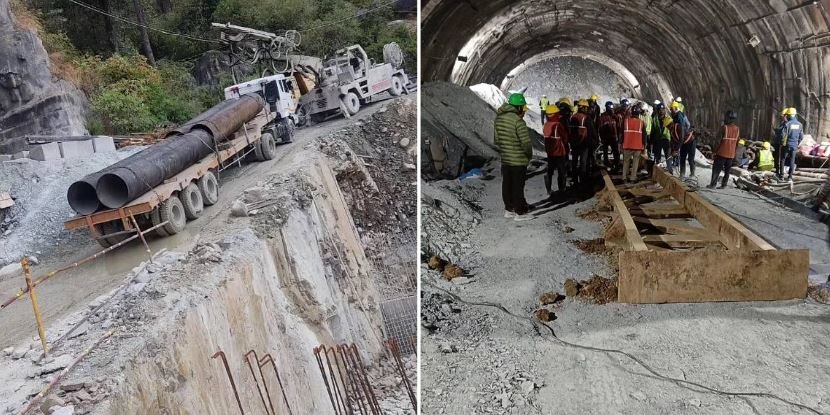 सिलक्यारा सुरंग में फंसे श्रमिकों को सुरक्षित निकालने के लिये चलाये जा…