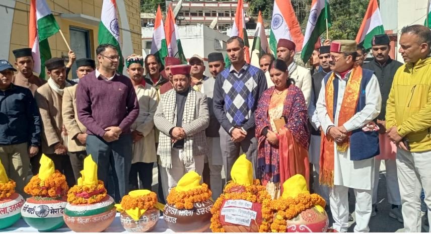 प्रत्येक ग्राम पंचायातों से एकत्रित किये गये मिट्टी कलश को देहरादून रवाना किया गया