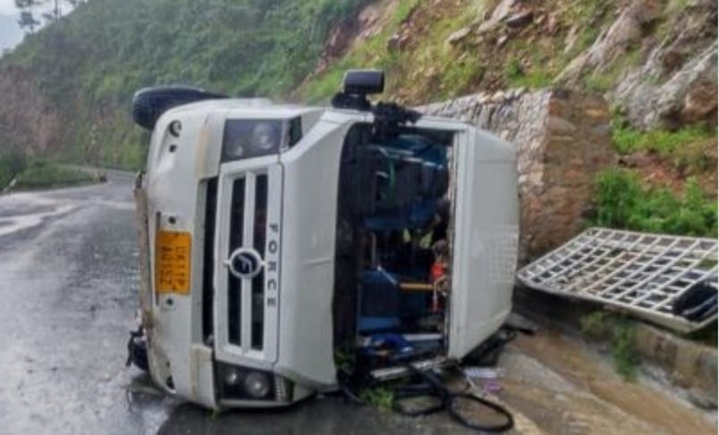 सड़क पर पलटा टेम्पो ट्रैवलर वाहन, सात यात्री घायल