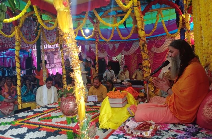 पट्टी भदूरा के आराध्य देव काेटेश्वर महादेव मंदिर पुजारगांव में एकादश शिव महापुराण महारूद्र यज्ञ विधिवत पूजा अर्चना के साथ शुरू