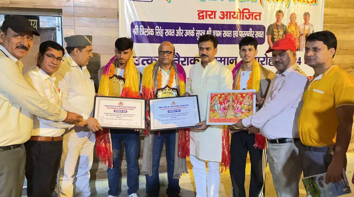 टिहरी झील में तैरकर रिकॉर्ड बनाने वाले पिता पुत्रों को किया सम्मानित