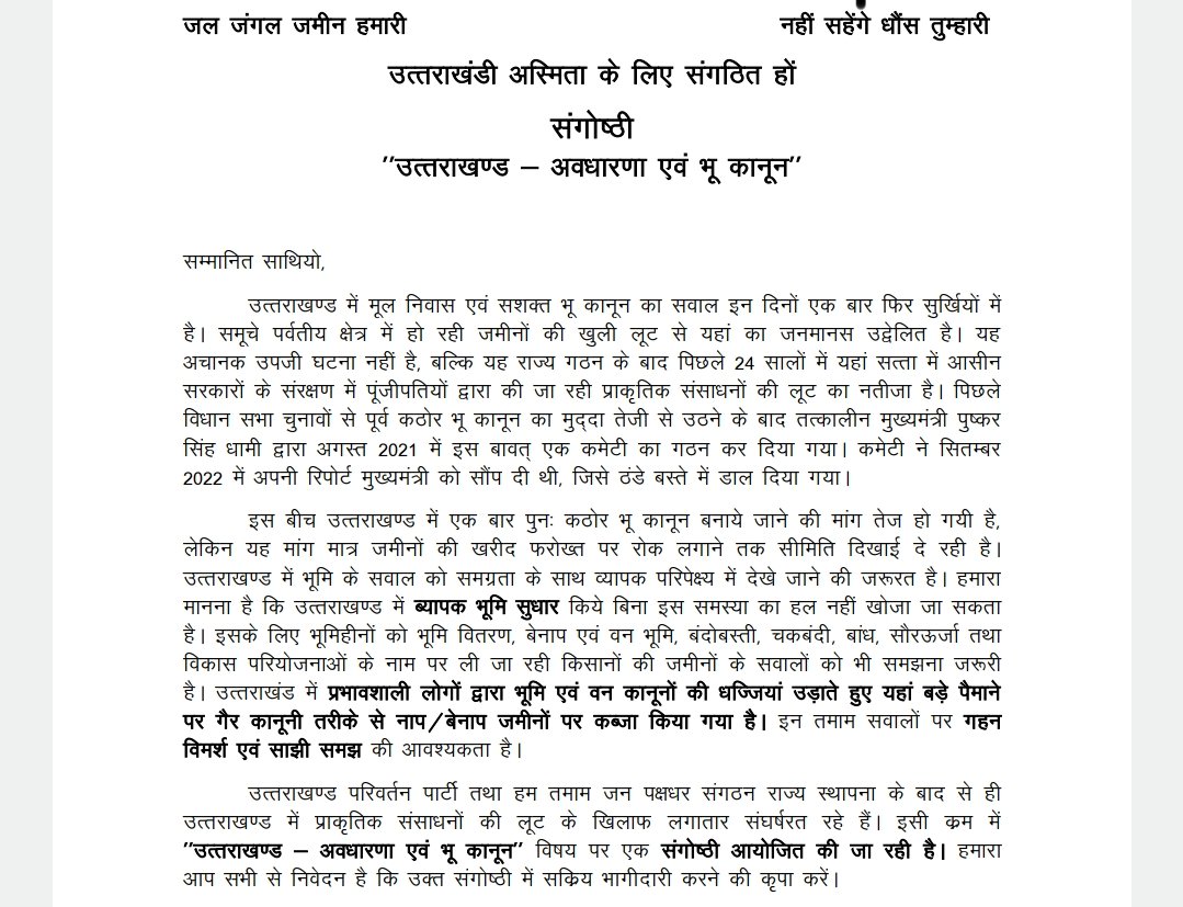 जल जंगल जमीन हमारी, नहीं सहेंगे धौंस तुम्हारी