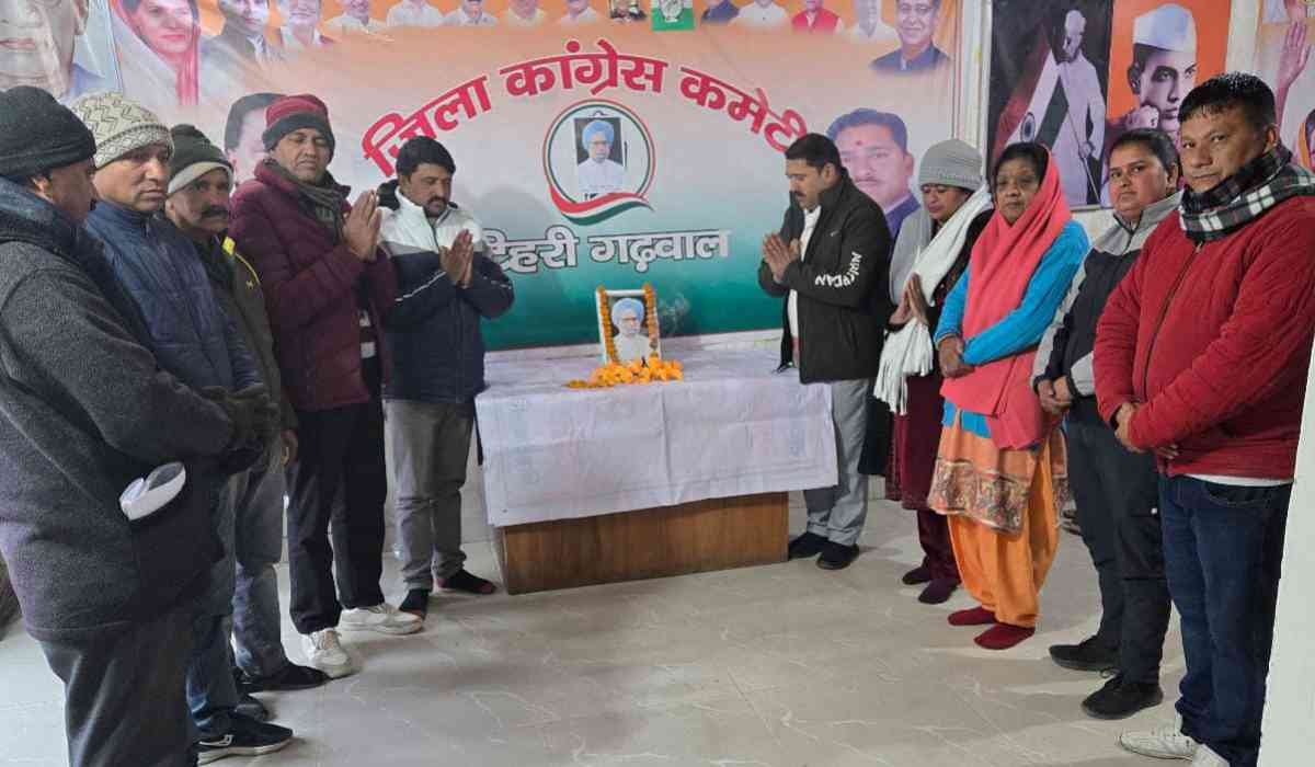 पूर्व प्रधानमंत्री डॉ. मनमोहन सिंह जी के निधन पर जिला कांग्रेस कमेटी कार्यालय नई टिहरी में कांग्रेस जनों द्वारा उनके चित्र पर पुष्प अर्पित कर उन्हें श्रद्धांजलि अर्पित की