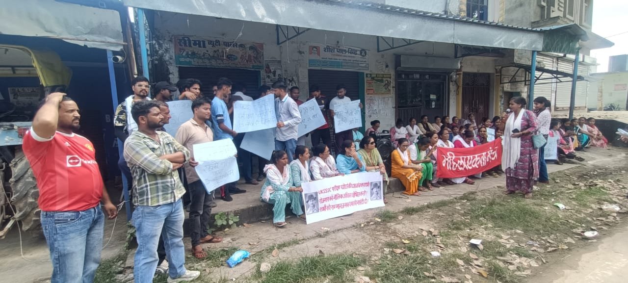 शहीद भगत सिंह के जन्म दिवस पर विगत 21 सितंबर को यूकएएसएसएस द्वारा आयोजित परीक्षा में हुए पेपर लीक को लेकर मालधन में युवाओं और महिलाओं आक्रोश फूट गया