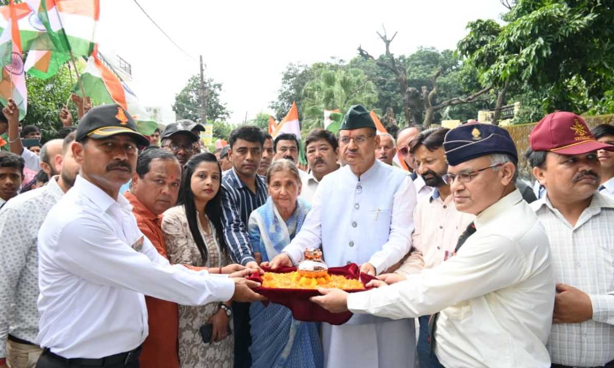 शहीद सम्मान यात्रा 2.0 के तहत शहीद लेफ्टिनेंट प्रतीक आचार्य के आंगन की मिट्टी ली