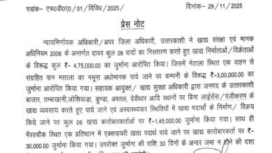 आगामी 13 दिसंबर 2025 (द्वितीय शनिवार) को जिला न्यायालय उत्तरकाशी के साथ ही सिविल जज न्यायालय पुरोला एवं बड़कोट में…