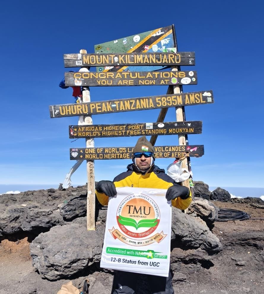 गर्व के पलः मुरादाबाद के पर्वतारोही मनोज कुमार ने तीर्थंकर महावीर यूनिवर्सिटी का बैनर लहराया, टीएमयू ने बढ़ाए हाथ तो…