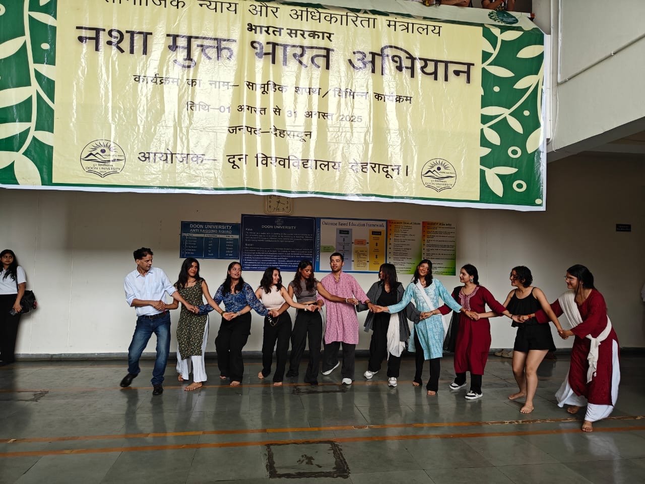 दून विश्वविद्यालय के नशा मुक्ति, सांस्कृतिक प्रकोष्ठ एवं थिएटर विभाग के संयुक्त तत्वावधान में, सामाजिक न्याय एवं अधिकारिता मंत्रालय, भारत सरकार द्वारा संचालित “नशा मुक्त भारत अभियान” के अंतर्गत एक भव्य सामूहिक नृत्य कार्यक्रम विश्वविद्यालय परिसर में आयोजित किया गया।