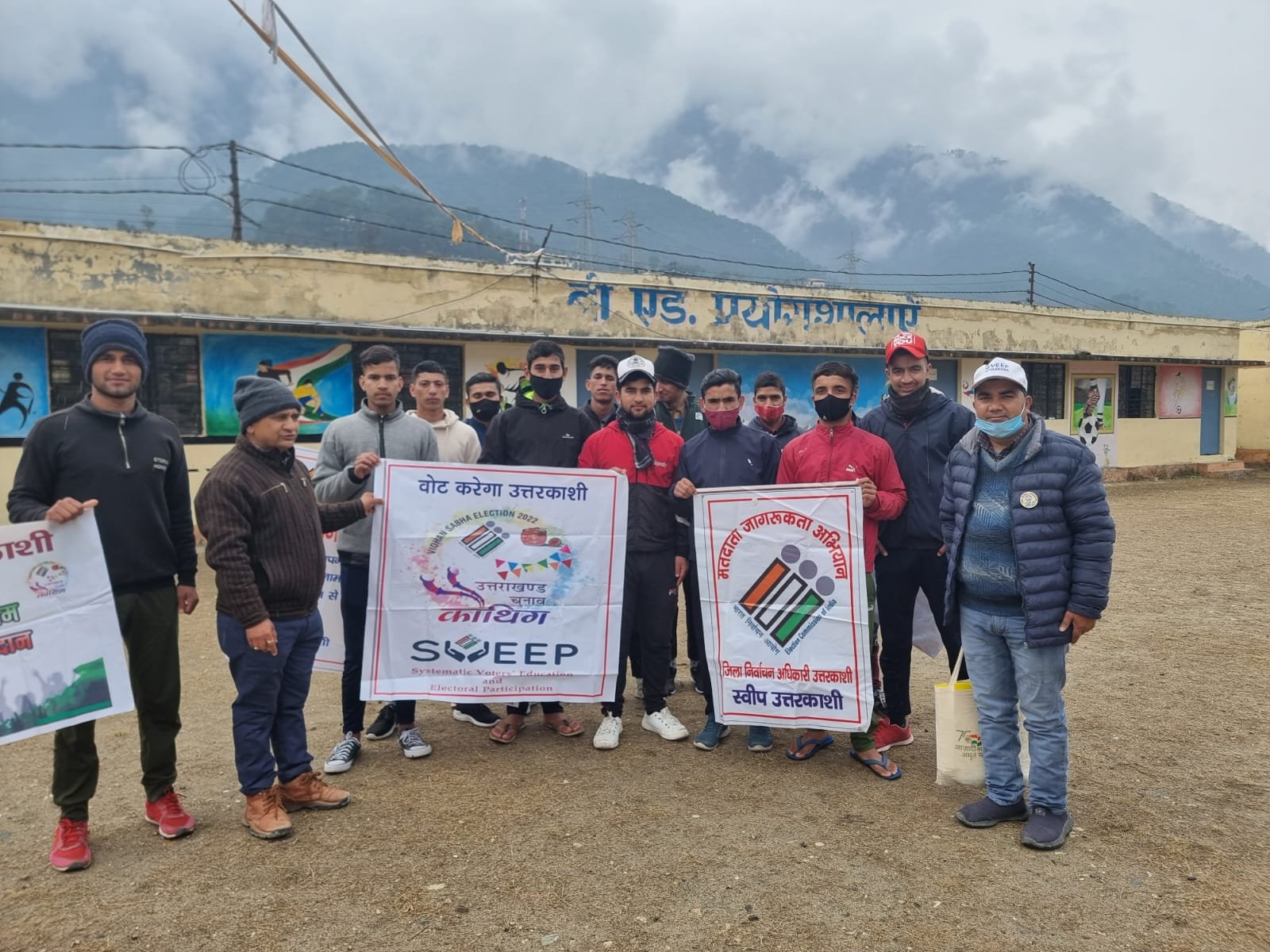 राजकीय स्नातकोत्तर महाविद्यालय उत्तरकाशी में महाविद्यालय के मतदाता जागरूकता अभियान (SVEEP) के तहत महाविद्यालय की प्राचार्य प्रो सविता गैरोला जी के निर्देशानुसार में स्वतंत्र , निष्पक्ष , निर्भीक मतदान हेतु SVEEP के नोडल अधिकारी डॉ महेंद्र पाल सिंह परमार एवं जिला निर्वाचन से अधिकृत मतदान जागरूकता अभियान (SVEEP) के नोडल अधिकारी डॉ शम्भू नौटियाल जी द्वारा स्वीप कार्यक्रम के तहत स्नातक के छात्र – छात्राओं को स्लोगन, नारे, संबोधन व रेली निकाल कर जागरूक किया व् महाविद्यालय के शिक्षा संकाय के कर्मचारियों अधिकारियों को भी सपथ दिलाकर कर स्वतन्त्र , निष्पक्ष व् निर्भीक होकर मतदान हेतु प्रेरित किया इस अवसर पर निर्वाचन कार्यालय से SVEEP अधिकारी डॉ शम्भू नौटियाल जी द्वारा मतदान की महता, सहभागिता व् मतदान की शक्ति के बारे में जानकारी दी व् बताया कि मताधिकार की शक्ति वो शक्ति है जो हमारे लोकतंत्र को मजबूत करता है, डॉ नोटियाल द्वारा यह भी बताया गया कि यदि आपको को कोई भी प्रत्याशी पसंद नहीं है तो आप नोटा (NOTA) का बटन दबाकर भी अपनी संवेधानिक शक्ति प्रदर्शित कर सकते हैं |