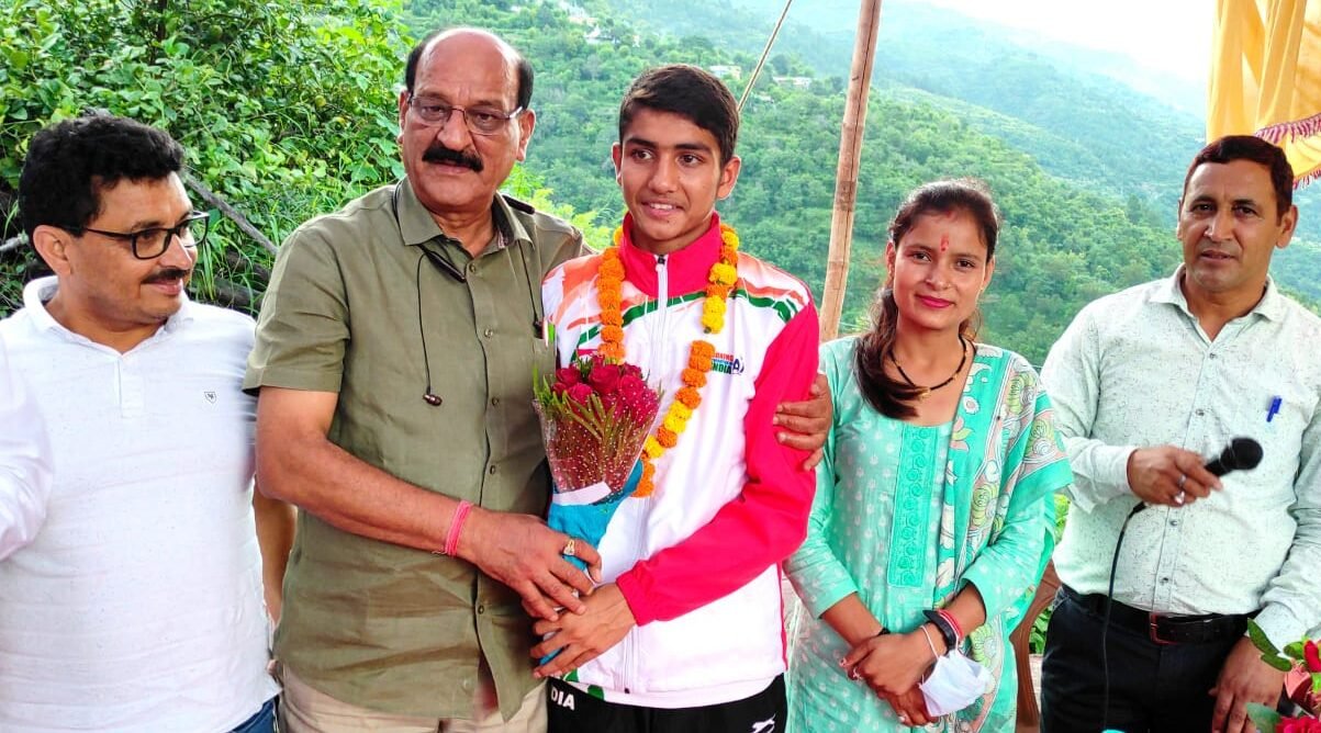 स्वर्ण पदक विजेता के घर पहुंचकर मंत्री सुबोध उनियाल दी बधाई