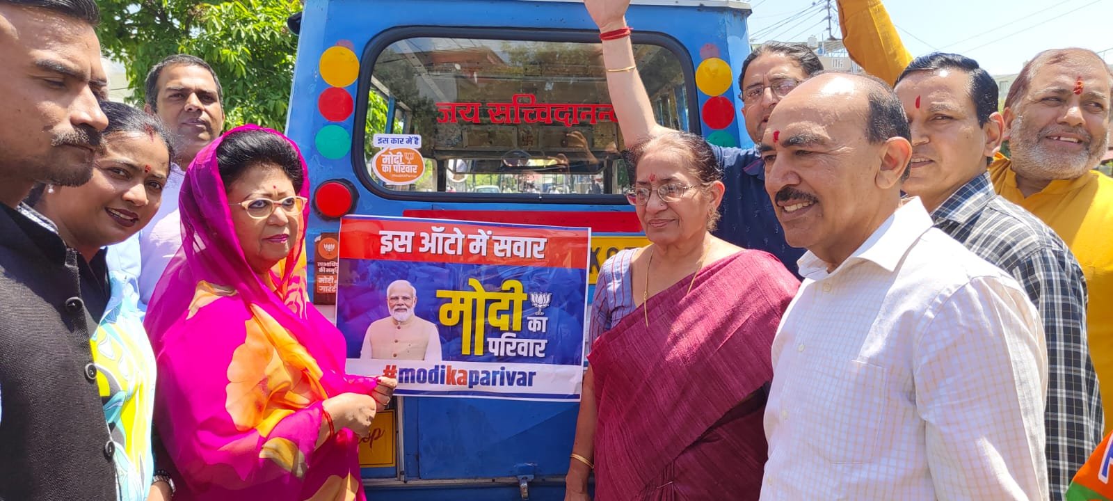 साथ ही विधायक सविता कपूर ने और सांसद प्रत्याशी माला राज्य लक्ष्मी शाह ने चुनाव प्रचार अभियान के तहत आटो, रिक्शा, विक्रम में प्रचार सामग्री चस्पा की ।