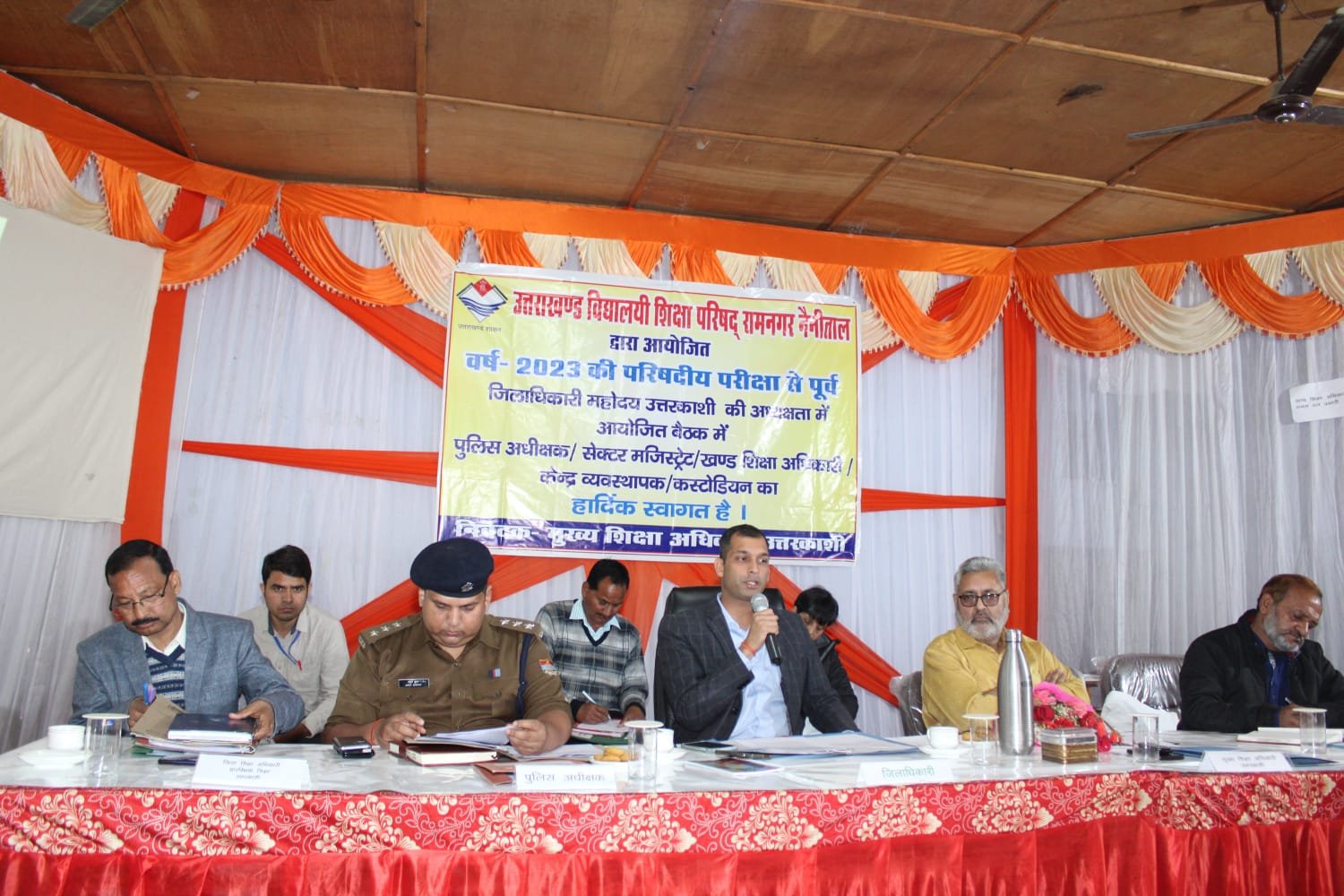 उत्तरकाशी , उत्तराखंड विद्यालयी शिक्षा परिषद नैनीताल द्वारा आयोजित वर्ष 2023 की परिषदीय परीक्षा से पूर्व सुमन सभागार उत्तरकाशी में जिलाधिकारी अभिषेक रुहेला की अध्यक्षता में बैठक आयोजित हुई। जिलाधिकारी ने परिषदीय परीक्षा को पूर्ण पारदर्शिता एवं सुचिता के साथ सम्पन्न कराने के निर्देश शिक्षा विभाग को दिए। तथा उपस्थित सेक्टर मजिस्ट्रेट, खंड शिक्षाधिकारियों, केंद्र व्यवस्थापकों एवं परीक्षा प्रभारियों को नकलविहीन परीक्षा कराने को लेकर आवश्यक दिशा- निर्देश दिए।