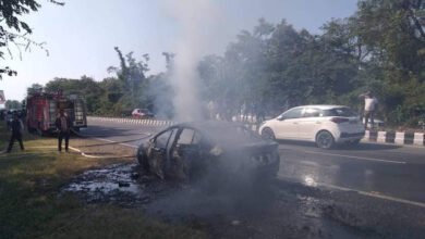 एयरपोर्ट के समीप कार में लगी आग,सुरक्षित निकाले सवार