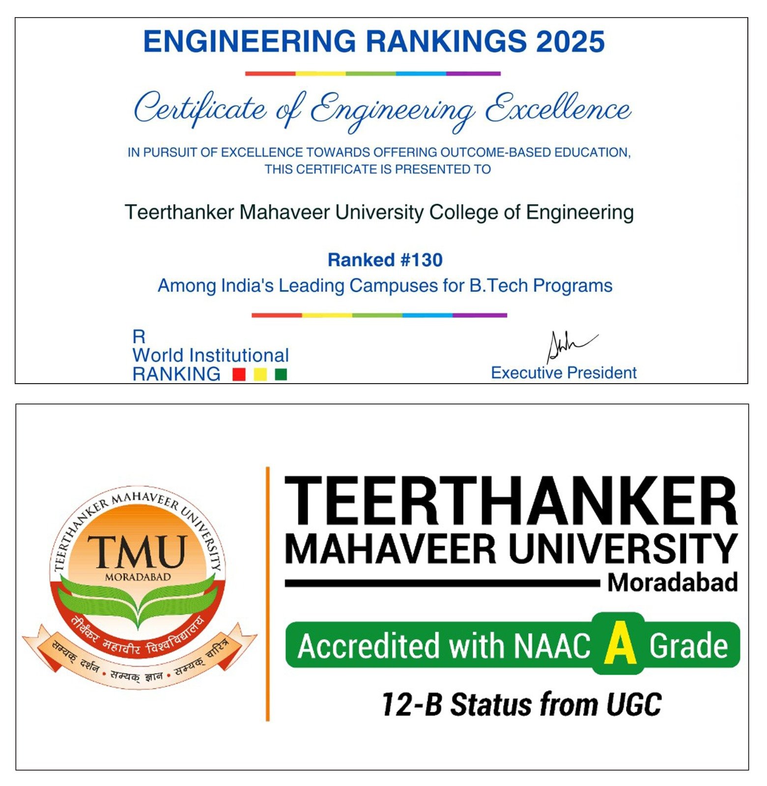 टीएमयू इंजीनियरिंग कॉलेज को आर वर्ल्ड इंस्टीट्यूशनल में 130वीं रैंकिंग