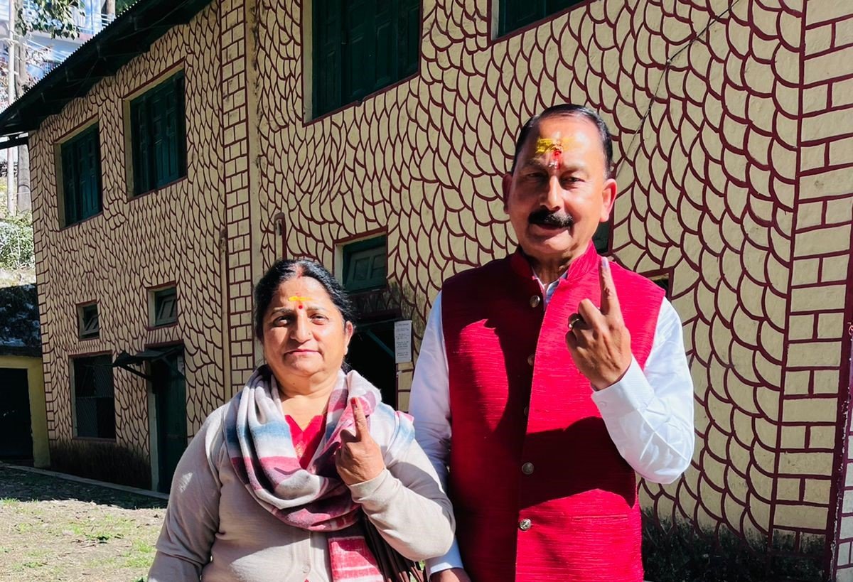 गंगोत्री के कांग्रेस प्रत्याशी सजवाण ने संस्कृत महाविद्यालय में डाला वोट