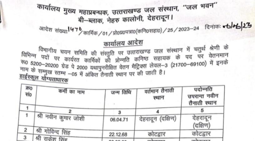 देहरादून : उत्तराखंड जल संस्थान ने लम्बे समय से पदोन्नति की मांग…
