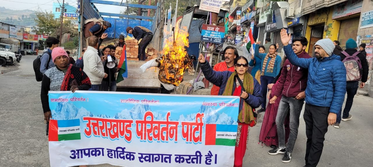 बेरोजगारों के दमन का उपपा ने पुतला फूंका और रोजगार को मौलिक अधिकार बनाने की मांग की