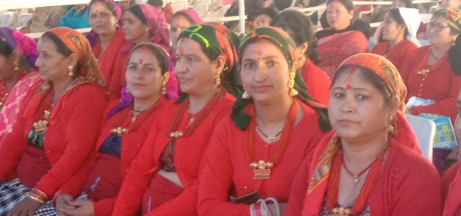 पारंपरिक परिधानों में पहुंच रही है महिलाएं