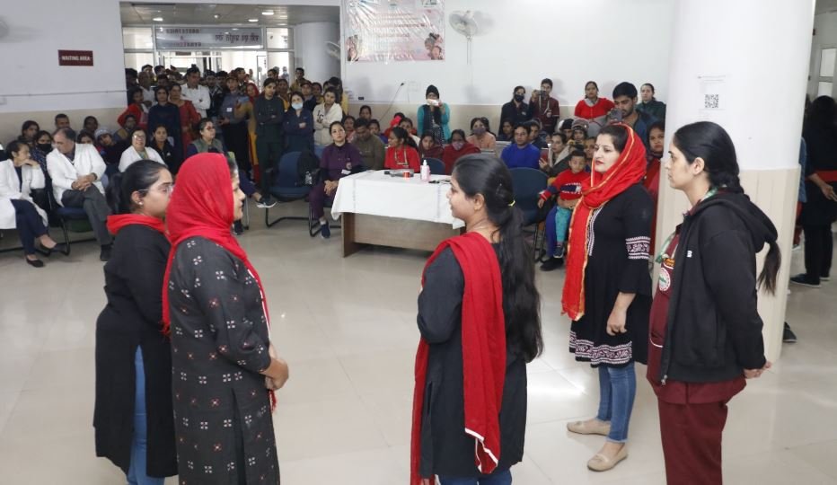 ‘‘सर्वाइकल कैंसर उन्मूलन दिवस‘‘ के अवसर पर नर्सिंग विभाग की डीएनएस सुश्री वंदना ने कार्यक्रम का संचालन करते हुए ओपीडी में मौजूद महिलाओं को इस दिवस की महत्ता बतायी। इस दौरान नर्सिंग ऑफिसर्स और रेजिडेंट डॉक्टरों की टीम द्वारा नुक्कड़ नाटक प्र्रस्तुत कर इस बीमारी के प्रति महिलाओं को जागरूक किया गया। साथ ही इस विषय पर पोस्टर और स्लोगन प्रतियोगिता भी आयोजित की गई। कार्यक्रम में सर्वाइकल कैंसर के जोखिम कारक, संकेत और लक्षण, स्क्रीनिंग कार्यक्रम, एचपीवी टीकाकरण आदि के बारे में विस्तृत जानकारियां दी गयीं। इस दौरान गायनी विभाग की डॉ. अनुपमा बहादुर, चीफ नर्सिंग आॅफिसर रीटा शर्मा, एएनएस सुश्री सोनिया, सुश्री नीमवाक, एएनएस, एनओ सहित कई अन्य मौजूद रहे।