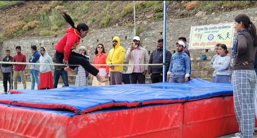 श्री गुलाब सिंह राजकीय महाविद्यालय चकराता देहरादून में दो दिवसीय वार्षिक क्रीड़ा समारोह हर्षोल्लास के साथ संपन्न हो गया। प्रतियोगिताओं में सर्वश्रेष्ठ प्रदर्शन करने पर कु. आयुषी को ओवरऑल चैंपियन घोषित किया गया। दो दिवसीय क्रीड़ा समारोह में आयोजित भाला फेंक प्रतियोगिता में कु.रविना व गौरव राठौर ने पहला स्थान प्राप्त किया। चक्का फेंक का प्रथम पुरस्कार कु.दिव्या व निकेश तोमर ने अपने नाम किया। ऊंची कूद में आयुषी और उदय ने बाजी मारी वहीं, 1000 मीटर दौड़ में रविना और अभिषेक अव्वल रहे। खो-खो में मनीषा राणा की टीम को पहला स्थान मिला।