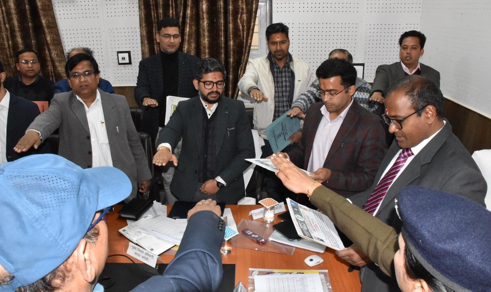 इस दौरान अपर जिला निर्वाचन अधिकारी अभिनव शाह, उप जिला निर्वाचन अधिकारी विवेक प्रकाश, सहायक रिटर्निंग अधिकारी कर्णप्रयाग संतोष पांडेय, सहायक रिटर्निंग अधिकारी बद्रीनाथ आरके पांडेय, सहायक रिटर्निंग अधिकारी थराली अबरार अहमद, एसडीएम कमलेश मेहता, नोडल अधिकारी व्यय अनुवीक्षण प्रकोष्ठ मामूर जहां, स्वीप कार्यक्रम के नोडल अधिकारी कुलदीप गैरोला, नोडल अधिकारी परिवहन ज्योति शंकर मिश्र, नोडल अधिकारी ईटीपीबीएस एवं ईडीसी विजय प्रकाश मौर्य सहित विभिन्न व्यवस्थाओं के लिए नामित नोडल अधिकारी मौजूद थे।