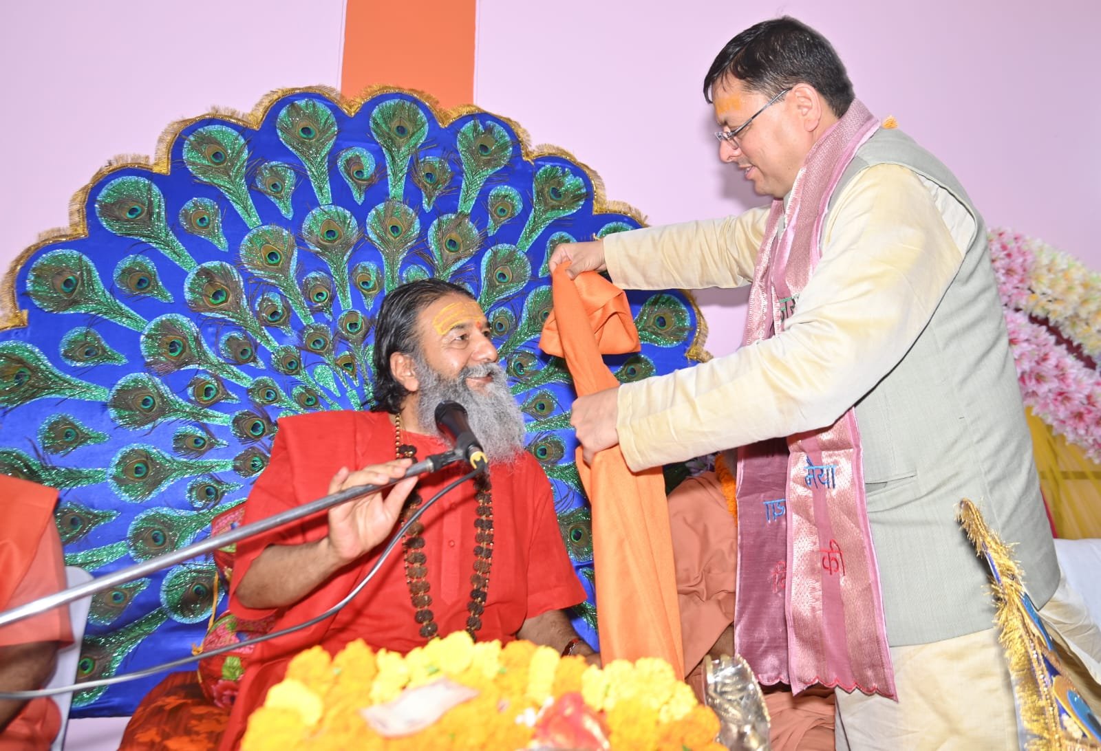 हरिद्वार: मुख्यमंत्री पुष्कर सिंह धामी ने बुधवार को हरिपुर कलां हरिद्वार में हरि सेवा आश्रम के वार्षिकोत्सव, दशहरा महोत्सव एवं श्रीमद्भागवत कथा ज्ञान यज्ञ में प्रतिभाग किया। उन्होंने इस अवसर पर आयोजित कार्यक्रम का मंत्रंोच्चारण के बीच दीप प्रज्ज्वलित कर शुभारम्भ किया तथा आरती एवं पूजा-अर्चना की एवं सन्तों व महात्माओं का आशीर्वाद प्राप्त किया।