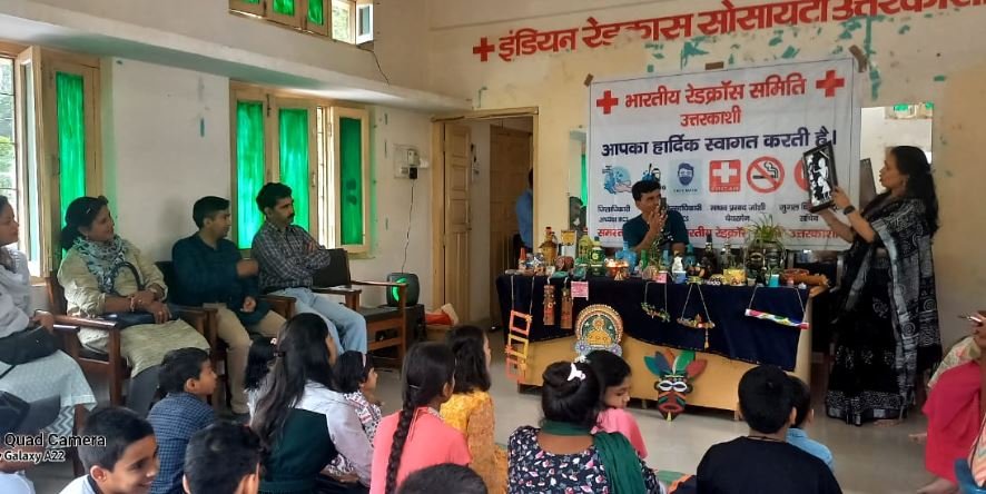 हिमानी मटूड़ा, सहायक अध्यापक राजकीय उच्चतर माध्यमिक विद्यालय, सूरी, चिन्यालीसौड़, वर्तमान पता, मैन बाजार, उत्तरकाशी द्वारा रेडक्रॉस समिति द्वारा आयोजित कार्यशाला में बच्चों के लिये क्राफ्ट, पेंटिंग, वेस्ट मटेरियल सामान से उपयोगी चीज़ों के बारे में बताया। कैसे घर में पड़े वेस्ट सामान से घर को सजाया जा सकता है। कूड़े को कम किया जा सकता है।