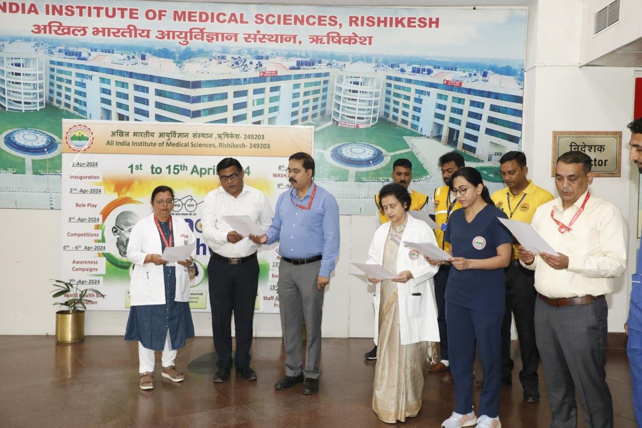 ऋषिकेश : अखिल भारतीय आयुर्विज्ञान संस्थान, एम्स ऋषिकेश में मनाए जा रहे स्वच्छता पखवाड़े के तहत लोगों को स्वच्छता के प्रति जागरूक करने के लिए विभिन्न जन-जागरूकता कार्यक्रमों का आयोजन किया गया। इस दौरान संस्थान के स्टाफ द्वारा स्वच्छता शपथ भी ली गई।