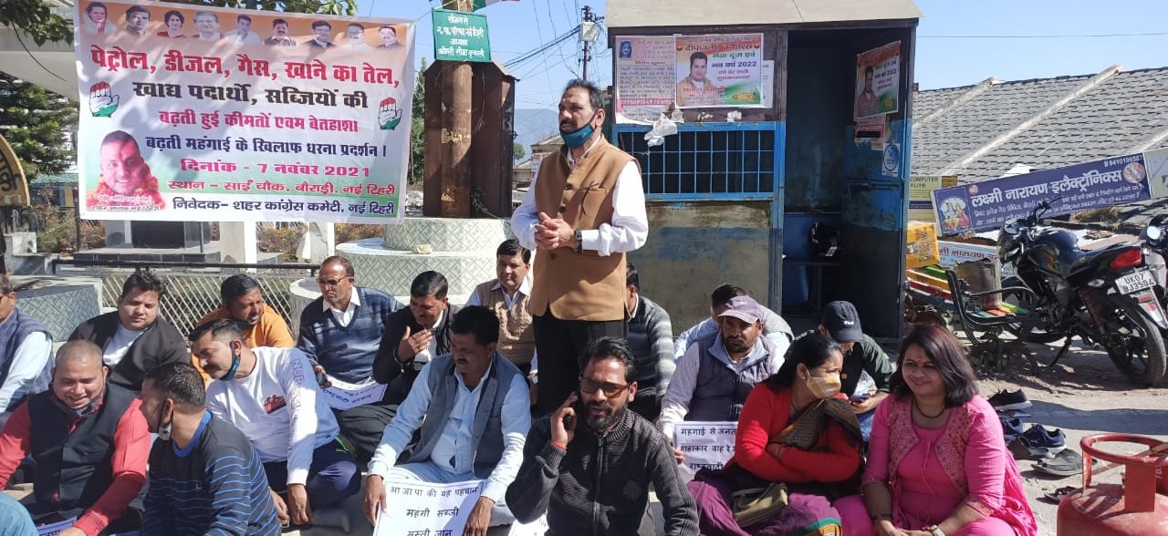 नई टिहरी। अखिल भारतीय कांग्रेस कमेटी और प्रदेश कांग्रेस कमेटी के आह्वान पर रविवार को कांग्रेसजनों ने महंगाई, डीजल, पेट्रोल ,गैस और दैनिक खाद्य वस्तु में हो रही बेतहाशा वृद्धि के खिलाफ धरना प्रदर्शन किया गया।