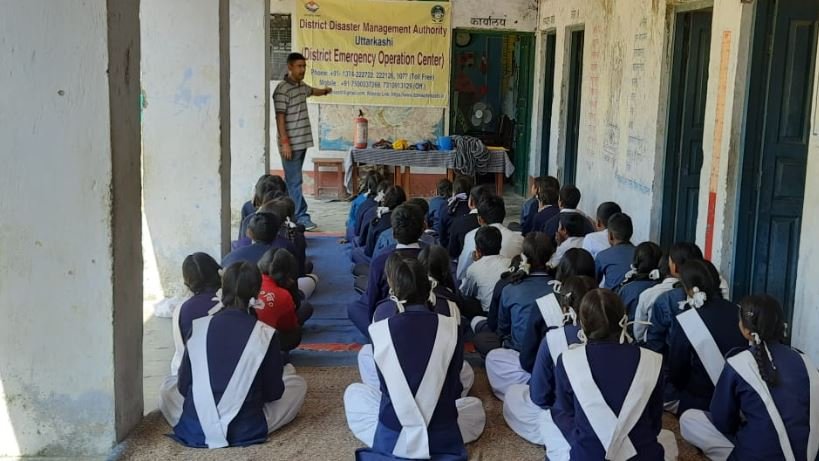 जिलाधिकारी महोदय, उत्तरकाशी के निर्देशन में जनपद उत्तरकाशी के विभिन्न विद्यालयों के प्रशिक्षण कार्यक्रमों की श्रृंखला में दिनांक 31 अक्टूबर 2023 को * विकास खंड डुण्डा के राजकीय कन्या उच्चतर माध्यमिक विद्यालय बडेथी चुंगी एवं रा०उ०मा० प्राथमिक विद्यालय बडेथी में एक दिवसीय आपदा संबंधी/त्वरित खोज बचाव,सेटेलाइट फोन संचालन विधि, मॉक अभ्यास एवं जन-जगरूकता प्रशिक्षण कार्यक्रम के अंतर्गत जनपद आपदा प्रबंधन प्राधिकरण (DDMA) उत्तरकाशी के तत्वाधान में, खोज- बचाव मास्टर ट्रेनर (DDMA), एस.डी.आर.एफ. उजेली, अग्निशमन उत्तरकाशी एवं क्यू.आर.टी. आपदा, द्वारा प्रशिक्षण दिया गया। इस अवसर पर विद्यालय के छात्र- छात्राओं एवं कर्मियों सहित लगभग 57 व्यक्ति उपस्थित थे।