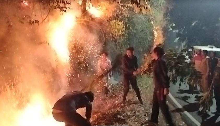 शनिवार देर रात को टेका मार्ग के जंगल में लगी आग पर काबू पाने के लिए जिलाधिकारी व संबंधित अधिकारियों ने आग बुझाने की कार्रवाई की। उनकी तत्परता और शीघ्रता के कारण आग को नियंत्रित करने में सफलता मिली। वहीं अग्निशमन विभाग द्वारा भी सुरक्षित रूप से आग को बुझाया गया। जिलाधिकारी ने जंगलों में आग लगने से होने वाले नुकसान के बारे में जागरूकता बढ़ाने के लिए कहा। साथ ही सक्त निर्देश भी दिए कि जो भी जंगल में आग लगाते हुए पाया जाता है उस पर कठोर दंडात्मक कार्रवाई करें।