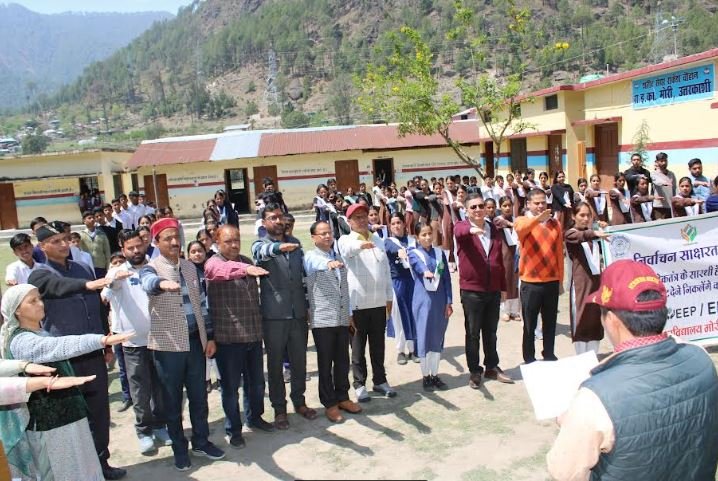 जिलाधिकारी एवं पुलिस अधीक्षक ने आज अभियान की शुरूआत में रा.इ.का. मोरी में आयोजित मतदाता जागरूकता एवं हस्ताक्षर कार्यक्रम में प्रतिभाग किया। जहां पर मतदान के लिए सामूहिक शपथ लेने के बाद अभियान का अगला चरण रा.इ.का. नैटवाड़ में आयोजित किया गया। नैटवाड़ में छात्रों एवं मतदाताओं से संपर्क कर जिलाधिकारी एवं पुलिस अधीक्षक ने लोगों से बिना किसी भय व प्रलोभन के अपने मताधिकार का प्रयोग करने का आह्वान किया और छात्रों के भी अपील की कि वे लोकतंत्र को मजबूत बनाने के लिए अपनी भूमिका का निर्वाह करते हुए अपने अभिभावकों को मतदान करने के लिए प्रेरित करें। स्वीप का आज का यह अभियान रा.इ.का. सांकरी में संपन्न हुआ जहां बड़ी संख्या में उपस्थित ग्रामीणों ने मतदान की शपथ ली और छात्रों ने भी मतदाताओं को प्रेरित करने का संकल्प व्यक्त किया।