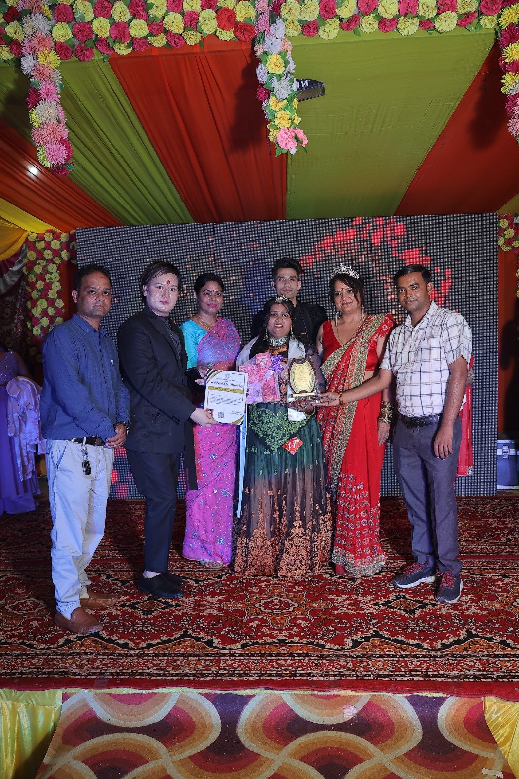 देहरादून । दून एकता शक्ति ट्रस्ट द्वारा श्रेष्ठ वेडिंग पॉइंट मोथरोवाला देहरादून में ” हरतालिका तीज महोत्सव ” का आयोजन किया गया | इस दौरान कार्यक्रम के अतिथियों द्वारा कार्यक्रम का शुभारंभ करते हुए उपस्थित लोगों को आयोजन की शुभकामनाएं दी। कार्यक्रम के मुख्य अतिथि मामचंद वर्मा जी पार्षद मोथरोवाला रहे | विशेष अतिथि के रूप में आचार्या वर्षा माट्ठा जी, रक्षिमा तोमर जी, विकास उनियाल जी, वही कार्यक्रम में विशिष्ट अतिथि के रूप में समाजसेवी अरुण कुमार यादव जी , प्रियंका जेना जी, निगार जी (फैशन आर्ट डिजाइनर) अभिषेक बेनीवाल जी, अनिता भट्ट जी, समीर मालिक जी, वीरेंद्र पोखरियाल जी उपस्थित रहे | कार्यक्रम की शुरुआत वंदना नृत्य ग्रुप से हुई | तद उपरांत सेलिब्रिटी मेकअप आर्टिस्ट मन्नत यादव जी द्वारा लाइव स्टेज मेकअप शो का आयोजन किया गया | कार्यक्रम में एक एक कर कैट वॉक, गीत संगीत, नृत्य की प्रस्तुति दी गयी | कार्यक्रम का मुख्य आयोजन तीज क्विन प्रतियोगिता रहा जिनमे मिस एवं मिसेज के साथ साथ बच्चों का समूह इसमे प्रतिभाग किया | मिस और मिसेज ग्रुप में आयोजित तीज क्वीन की विजेता अरुणा थापा रही, वही प्रथम रनरअप के रूप में सोनाली , द्वितीय रनरअप के रूप में जोत्सना थापा , तृतीय रनरअप के रूप