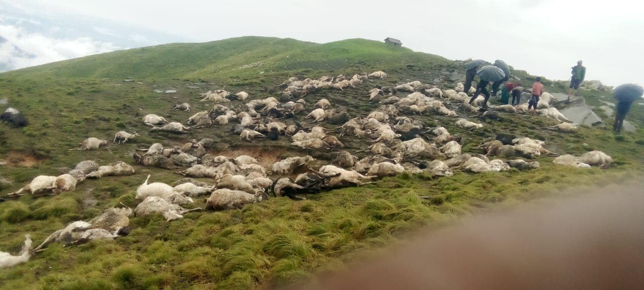 बागेश्वर : जिले के कपकोट में अचनाक बिजली गिरने से लगभग 400 बकरियों की मौत की दुःखद सूचना है। जानकारी के अनुसार, कपकोट के ग्राम झुनी के पाँखुटॉप में ग्राम पेठी, चौड़ा, गासी, सूपी के ग्रामीणों की 400 बकरियों के वज्रपात से मृत्यु होने की पुष्टि हुई है। अचनाक हुए इस हादसे में चरवाहों को भारी नुकसान हुआ है। मौके पर राहत एवं बचाव की टीमें भेजी गई हैं जो ग्रामीणों के नुकसान का जायजा ले रही हैं।