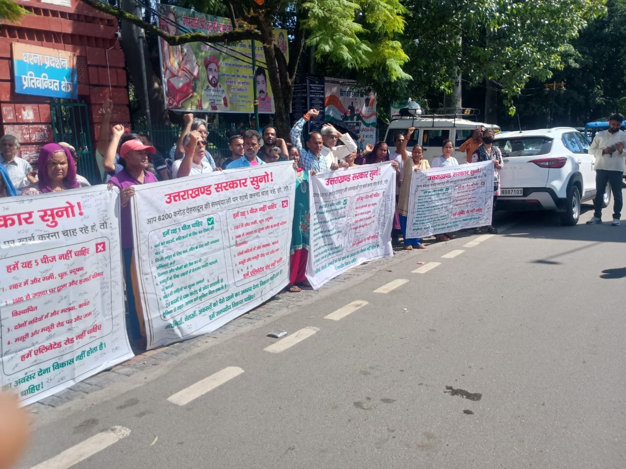 आज दून समग्र विकास अभियान के बैनर तले शहर भर के लोग , विभिन्न जन संगठन, पर्यावरणवादी संगठन एवं विपक्षी दल देहरादून के गाँधी पार्क पर जनता की आवाज़ के नाम पर बैनर हाथ में थामते मानव श्रृंखला बना कर आवाज़ उठाया कि जनपक्षीय विकास चाहिए, प्रस्तावित एलिवेटेड रोड नहीं। देहरादून शहर के अनेक जगहों में जन सभाएं आयोजित की गयी थी और उन जन सभाओं में सहमति बनी कि इसविनाशकारी, गैर ज़रूरी परियोजना पर 6200 करोड़ खर्च करने के बजाय, शहर में 400 से ज्यादा इलेक्ट्रिक बसों को चलाने से, महिलाओं को बस टिकट फ्री करने से, मज़दूरों के लिए शहरी रोज़गार गारंटी योजना चलाने और उसके द्वारा किफायती घरों को बनाने से, और शहर में निजी स्कूल, मॉल, एवं सिग्नल और चौकों पर सही व्यवस्था बनाने से जनता को भी राहत मिल पायेगी और ट्रैफिक की समस्या का हल भी हो सकता है। यह सारे काम अगले पांच से दस साल तक हो सकता है जिसपर खर्चा 6200 करोड़ से कम होगा। प्रदर्शनकारियों ने कहा कि “जन सुनवाई” के नाम पर सरकार की और से इस बीच आयोजित कार्यक्रम में ब्रह्म फ़ैलाने की कोशिश की गयी कि इस प्रस्तावित परियोजना को बनना ही है, लेकिन सरकार को प्रभावित लोगों और इस शहर की जनता को कुछ बताने कि ज़रूरत नहीं है। यह जनता को डराने और धमकाने की कोशिश थी और उच्च न्यायलय ने इसको रद्द कर दी, यह सराहनीय है। हाल में अनुपूरक बजट में इस परियोजना के लिए 925 करोड़ का आवंटन किया गया है, जो स्वास्थ इंफ्रास्ट्रक्चर या शिक्षा इंफ्रास्ट्रक्चर पर आवंटित धनराशि से कई गुना ज़्यादा है। यह न सिर्फ देहरादून की बल्कि उत्तराखंड की जनता के साथ धोखा है और इससे इस सरकार की चरित्रत भी सामने आती है। प्रदर्शनकारियों ने मांग उठायी कि इस प्रस्तावित परियोजना को रद्द किया जाये और जनपक्षीय विकास पर कदम तुरंत उठाया जाये।