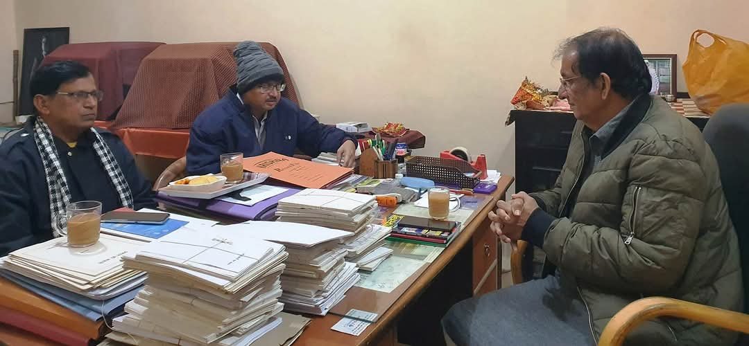पहले फोटो में – बाएं से – अफ़सर जमाल, डॉ. इम्तियाज़ अहमद ग़ाज़ी और श्वेताभ।