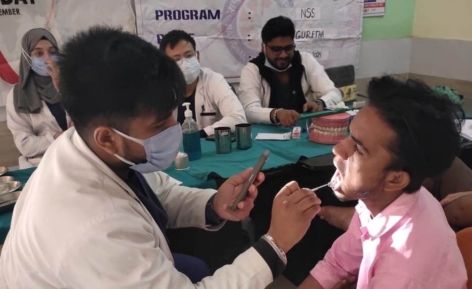 तीर्थंकर महावीर यूनिवर्सिटी, मुरादाबाद के डेंटल कॉलेज एंड रिसर्च सेंटर के डिपार्टमेंट ऑफ पब्लिक हैल्थ डेटिस्ट्री की ओर से गुरेठा में आयोजित एनएसएस डेंटल कैंप में 62 ग्रामीणों के दांतों की गहनता से जांच की गई। कैंप में एमडीएस के स्टुडेंट्स डॉ. प्रभात कुमार सिंह, डॉ. केके पुयिंग, डॉ. निशांत चौहान और बीडीएस तृतीय वर्ष के स्टुडेंट्स सिद्धार्थ, अरिषा, ऋचा आदि शामिल रहे। डेंटल कॉलेज के यूजी/पीजी स्टुडेंट्स ने ग्रामीणों और बच्चों को ब्रश करने के सही तरीके बताते हुए कहा, हमें दातों की सफाई पर विशेष ध्यान देना चाहिए।