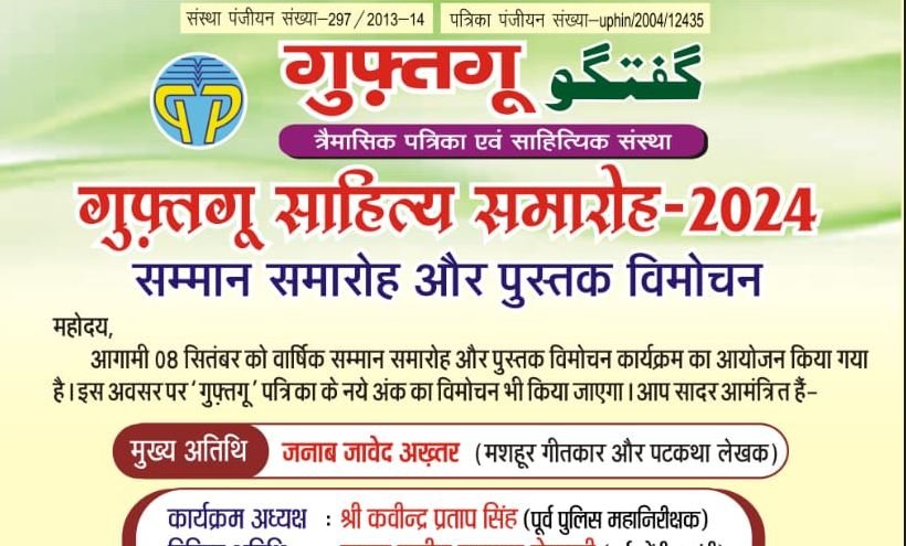 प्रयागराज। ‘गुफ़्तगू साहित्य समारोह-2024’ में मुख्य अतिथि के तौर पर शामिल होने के लिए 08 सितंबर को मशहूर पटकथा लेखक और गीतकार जावेद अख़्तर नगर में तशरीफ़ ला रहे हैं। सिविल लाइंस स्थित बिशप जानसेन स्कूल में आयोजित होने वाले इस कार्यक्रम की अध्यक्षता पूर्व पुलिस महानिरीक्षक कवींद्र प्रताप सिंह करेंगे। विशिष्ट अतिथि के रूप में पूर्व केंदीय मंत्री सलीम इक़बाल शेरवानी, आईएएस अमरनाथ उपाध्याय और समाज सेवी मॉरिस एडगर दान मौजूद रहेंगे। कार्यक्रम की रूपरेखा मशहूर गीतकार यश मालवीय प्रस्तुत करेंगे।