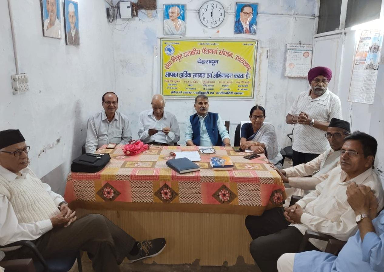 सेवा निवृत्त राजकीय पेंशनर्स संगठन उत्तराखण्ड,देहरादून की मासिक बैठक विरेन्द्र सिंह कृषाली प्रदेश अध्यक्ष की अध्यक्षता में व चन्द्र प्रकाश प्रदेश सचिव के संचालन में सम्पन्न हुई। बैठक में निम्नलिखित प्रस्ताव विचार-विमर्श कर पारित किये गए :-