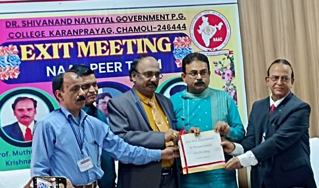 डा.शिवानंद नौटियाल राजकीय स्नातकोत्तर महाविद्यालय में नैक (राष्ट्रीय मूल्यांकन एवं प्रत्यायन परिषद)की तीन सदस्यीय टीम द्वारा निरीक्षण को अंतिम रूप दिया गया। बुधवार को टीम ने मुख्य प्रशासनिक अधिकारी,वैयक्तिक अधिकारी और एकाउंटेंट से संवाद किया। कार्यालय के निरीक्षण के दौरान वेतन पंजिका, कैश बुक,जीपीएफ व एनपीएस पासबुक, बजट आवंटन एवं व्यय,अवकाश लेखा व सेवा पुस्तिकाओं का गहनता से परीक्षण किया गया।