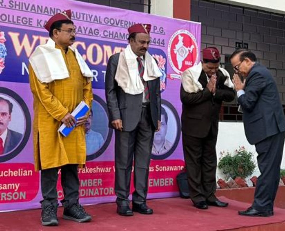 डा.शिवानंद नौटियाल राजकीय स्नातकोत्तर महाविद्यालय कर्णप्रयाग में मंगलवार को नैक (राष्ट्रीय मूल्यांकन एवं प्रत्यायन परिषद)की तीन सदस्यीय टीम ने समस्त व्यवस्थाओं को परखा। चेयरपर्सन प्रो.मुथुचेलियन कृष्णासामी, मेम्बर कोआर्डिनेटर प्रो.तारकेश्वर वीबी और प्रो.विलास सोनावाने के महाविद्यालय पहुंचने पर परंपरागत रूप से स्वागत किया गया।निदेशक उच्च शिक्षा के प्रतिनिधि के रूप में पीजी कालेज गोपेश्वर के प्राचार्य प्रो.के.एस.नेगी मौजूद रहे।ध्वजारोहण के बाद एनसीसी यूनिट द्वारा उन्हें गार्ड ऑफ ऑनर दिया गया। शौर्य दीवार और श्रीदेव सुमन के चित्र पर माल्यार्पण के बाद निरीक्षण कार्य प्रारंभ हुआ।