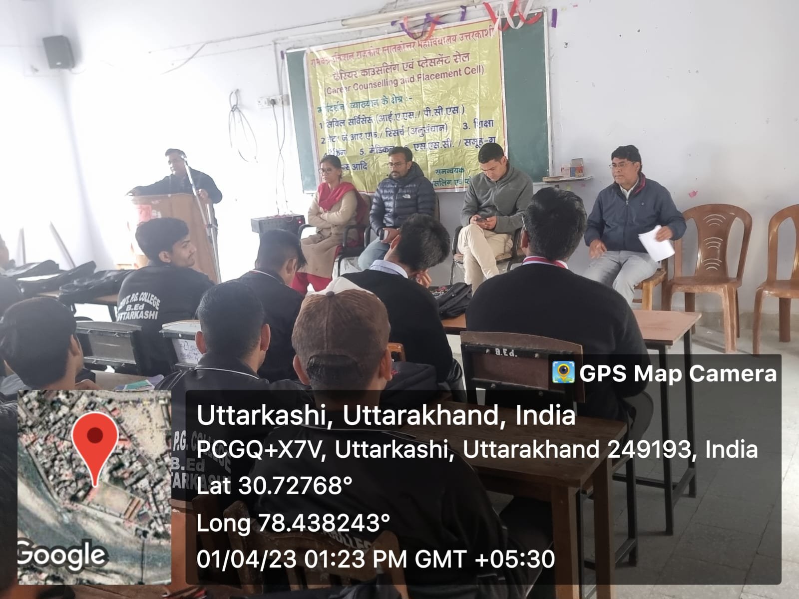 उत्तरकाशी , नेशनल अप्रेंटिस प्रमोसन स्कीम (NAPS) के तहत राजकीय स्नातकोत्तर महाविद्यालय उत्तरकाशी में महाविद्यालय की प्राचार्या प्रोफेसर सविता गैरोला के निर्देशन में 1 अप्रैल 2023 को पुरिखेत परिसर में राजकीय औद्योगिक संस्थान जोशियाड़ा के सहयोग से NAPS सम्वर्धन कार्यशाला का आयोजन किया गया। जिसमें ITI से आये श्री संदीप भोटिया एवं श्री विकास सिंह नाथ जी द्वारा छात्र एवं छात्राओं को NAPS के तहत पंजीकरण हेतु जानकारी दी गई एवं उनके द्वारा बताया गया कि युवा यदि अपनी रुचि के अनुसार दक्षता प्राप्त करते हैं तो वे अच्छी कपनी में जॉब पा सकते है या अपना व्ययवसाय शुरू कर सकते हैं