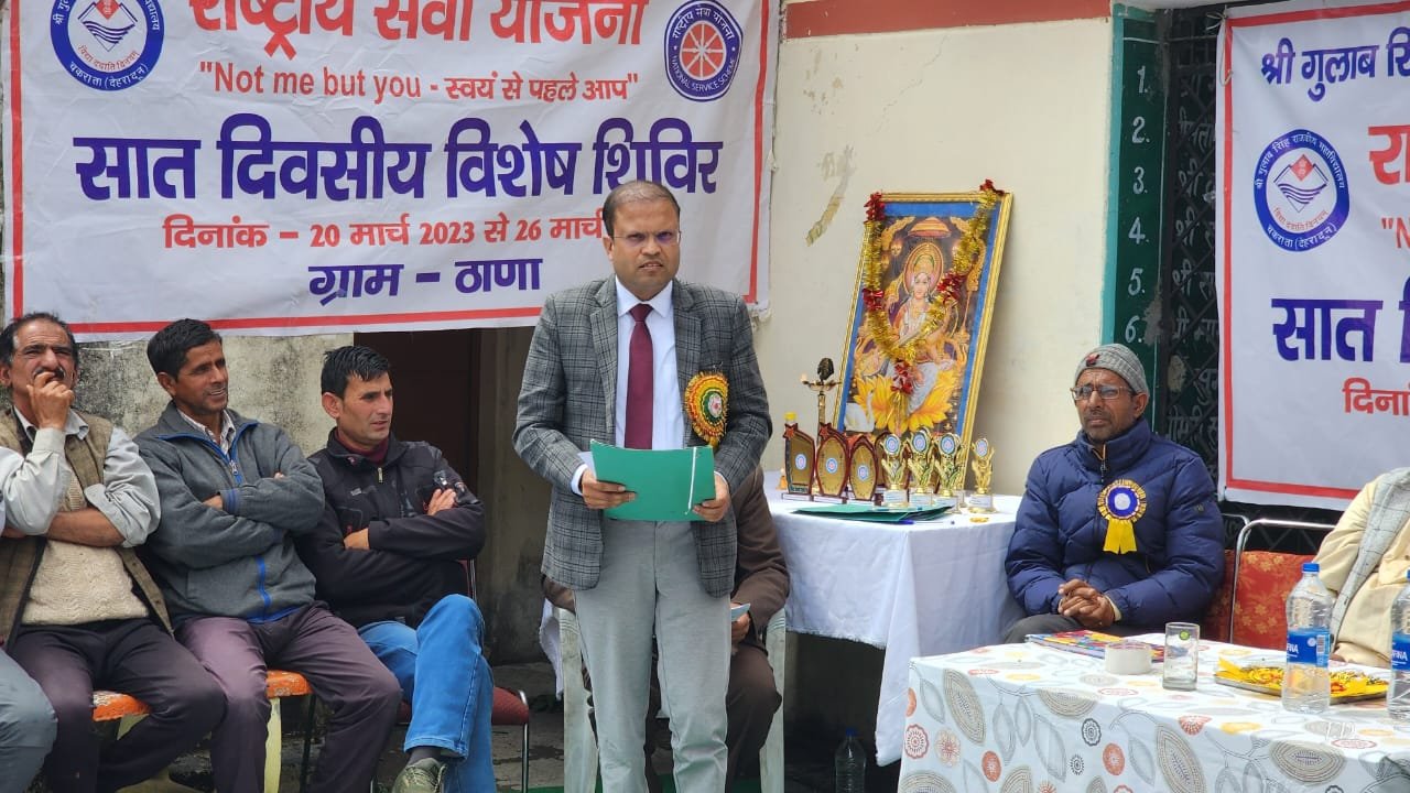 सर्वश्रेष्ठ स्वयंसेवियों के रूप में डिम्पल, मनीषा,उदय और राज वर्मा को पुरस्कृत किया गया। बी.एस-सी. प्रथम वर्ष की टाॅपर और शिविरार्थी कु.महक को ‘स्व.साईं दास तलवाड़ मेधावी छात्रवृति’ के अंतर्गत एक हजार एक सौ रुपए और मैडल देकर सम्मानित किया गया। इस मौके पर सह कार्यक्रम अधिकारी डा. आराधना भंडारी,वीरेंद्र जोशी, बलबीर तोमर, अर्जुन जोशी,सालिग राम,मौहर चौहान, माया दत्त, वयोवृद्ध संतराम जोशी,प्यारो चौहान, सुधा जोशी,डा.जितेंद्र दिवाकर, डा.श्याम कुमार, डा.पवन भट्ट, डा.पूजा रावत, डा.सरन सिंह, अंकुर शर्मा,अर्जुन रावत,विनोद जोशी,छात्र संघ अध्यक्ष अरविंद चौहान सहित शिविरार्थी और बड़ी संख्या में ग्रामवासी मौजूद रहे।