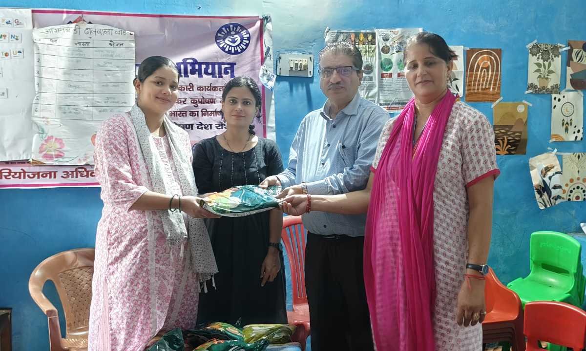 महिला एवं बाल विकास अधिकारी संजय गौरव ने बताया कि पोषण अभियान के अंतर्गत पोषण कीट का वितरण किया जा रहा है ताकि महिलाओं और बच्चों में कुपोषण की समस्या को समाप्त किया जा सके तथा उन्हें संतुलित आहार उपलब्ध हो सके।