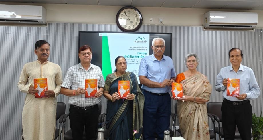 देहरादून,13 सितम्बर,2024। राजभाषा हिन्दी दिवस की पूर्व सन्ध्या पर दून पुस्तकालय एवं शोध केन्द्र में एक कार्यक्रम का आयोजन किया गया। सरस्वती वन्दना तथा हिन्दी के महत्व पर आधारित विभिन्न कवयित्रियों ने सस्वर कविताओं का वाचन से कार्यक्रम का शुभारंभ हुआ। इस अवसर पर कार्यक्रम की अध्यक्षता वरिष्ठ साहित्यकार व दून स्कूल के प्राचार्य श्री सुदेश ब्याला ने की। कार्यक्रम में मुख्य अतिथि के तौर पर डॉ. सुधा रानी पाण्डेय थीं। मुख्य वक्ता के तौर पर श्रीमती कमला पंत व वरिष्ठ साहित्यकार व राजभाषा विशेषज्ञ डॉ. मुनिराम सकलानी की पुस्तक आजादी का अमृत महोत्सव और राजभाषा हिन्दी की प्रगति यात्रा का लोकार्पण किया।
