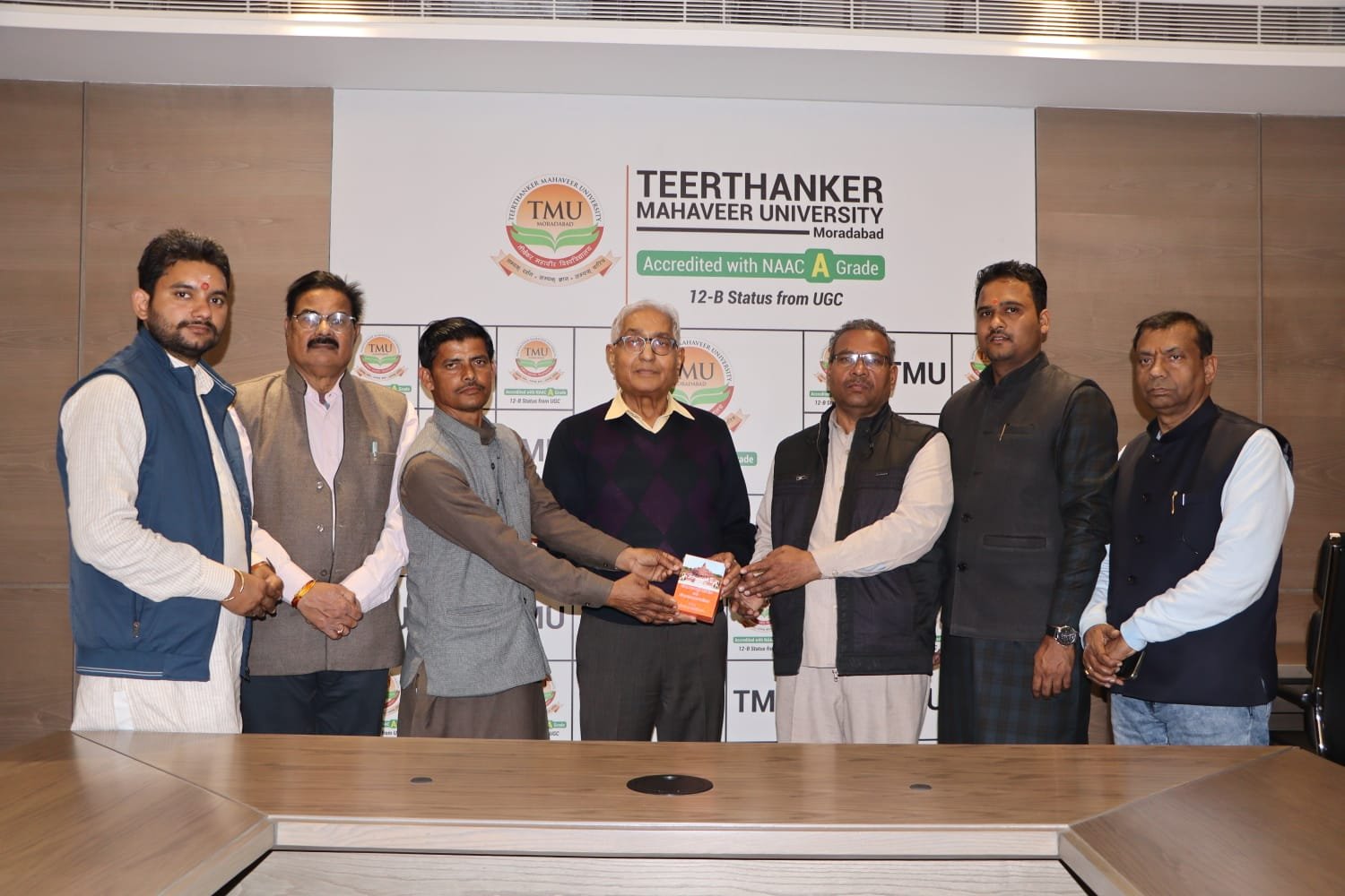 मुरादाबाद। तीर्थंकर महावीर विश्वविद्यालय के लिए बुधवार का दिन विशेष हो गया। श्रीराम मंदिर तीर्थ क्षेत्र कमेटी के कार्यकर्ता प्राण-प्रतिष्ठा कार्यक्रम में शामिल रहने वाले टीएमयू कुलाधिपति श्री सुरेश जैन को प्रसाद देने के लिए विश्वविद्यालय पहुंचे। प्रसाद स्वरूप टीएमयू कुलाधिपति को श्रीराम मंदिर तीर्थ क्षेत्र कमेटी के महामंत्री श्री चंपतराय की ओर से आभार एवं शुभकामना पत्र के साथ ही रामलला के निर्माण में प्रयुक्त पाषाण का अंश एवं भगवान राम का चित्र अंकित एक रजत सिक्का प्रदान किया। टीएमयू के कुलाधिपति श्री सुरेश जैन ने इस प्रसाद को समूचे मुरादाबाद का सम्मान बताया। रामलला की प्राण-प्रतिष्ठा समारोह में शामिल रहने को परम सौभाग्य का सूचक बताया। इस दौरान सुरेंद्र पाल सिंह, वतन कुमार, पवन कुमार जैन, चंद्रपाल सिंह, रोहित कुमार, विनोद कुमार आदि देने में शामिल रहे।