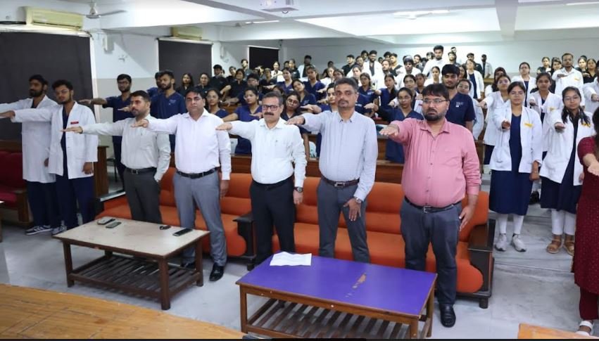साथ ही उसकी निजी जानकारी गुप्त रखी जाएगी। संचालन डॉ. मालविका अग्रवाल ने किया।कार्यक्रम में डेंटल कॉलेज की स्टुडेंट्स वंशिका त्यागी, रागिनी त्रिपाठी, अपूर्व कौशिक आदि ने भी अपने-अपने विचार प्रस्तुत किए। नशा मुक्ति भारत के शपथ ग्रहण कार्यक्रम में डेंटल कॉलेज की ओर से हर्षित जैन, तुलिका सक्सेना, श्रद्धा जैन, तिशा जैन, उमंग जैन, साक्षी झा, अनन्या, खुशी श्रीवास्तव, वृन्दा अग्रवाल, कुनाल, अनुष्का, शिवांगी आदि भी शामिल रहे।