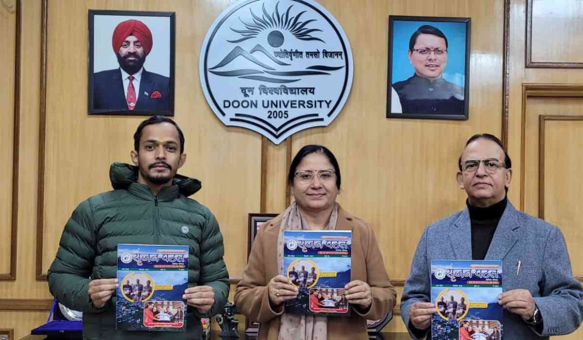 देहरादून: दून विश्वविद्यालय की कुलपति प्रो.सुरेखा डंगवाल ने मंगलवार को अपने कार्यालय में “साईं सृजन पटल-मासिक पत्रिका” के पंचम अंक का विमोचन किया। प्रो.डंगवाल ने इस अवसर पर पत्रिका के संपादक प्रो.के.एल.तलवाड़ एवं उनकी संपादकीय टीम को शुभकामनाएं देते हुए कहा कि इस पत्रिका के माध्यम से उत्तराखंड की समृद्ध विरासत और परंपराओं को आमजनमानस तक पहुंचाने का सराहनीय प्रयास किया जा रहा है।